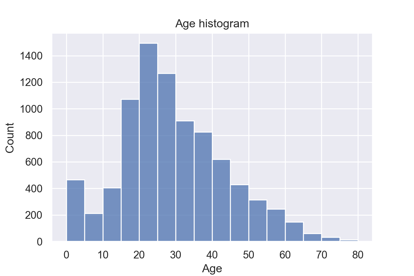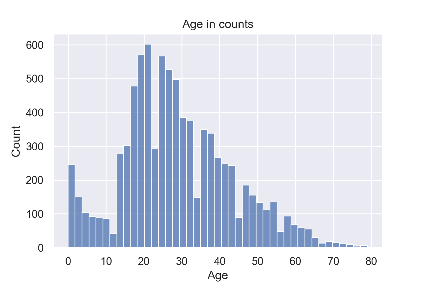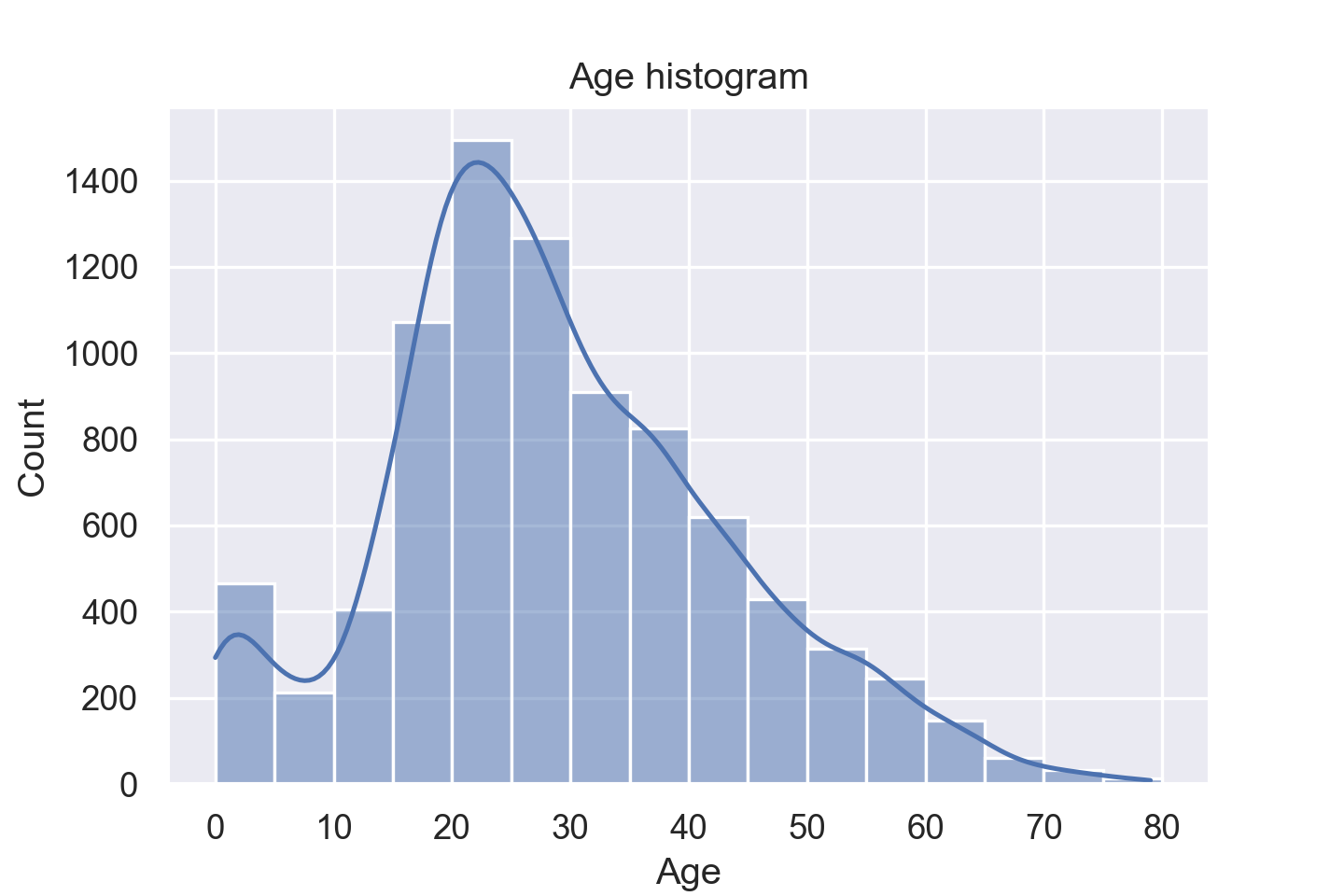 小孩异常多,本来以为是把缺失值当成 0 处理了,但实际并不是,seaborn 是把缺失值忽略了。Age 为 0 的数据本身就有 175 条,有些不合理。